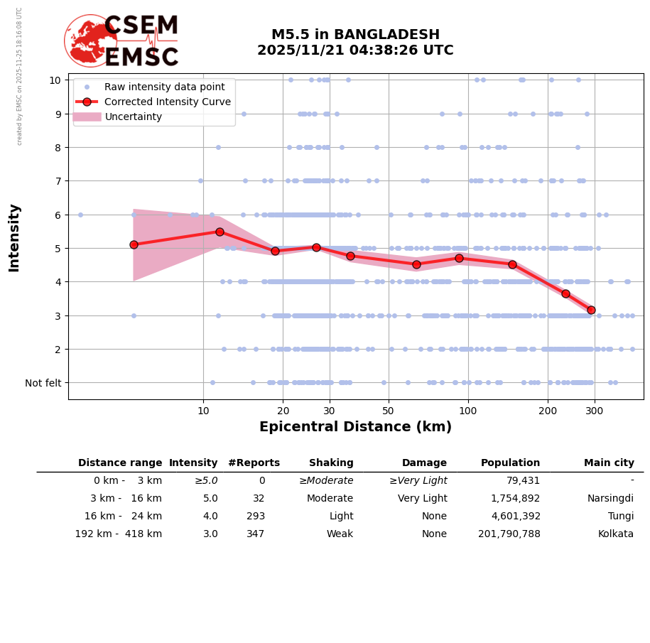 • Furthermore, to avoid the association with wrong events, we filter testimonies in distance and in intensity depending on the magnitude of the seismic event.